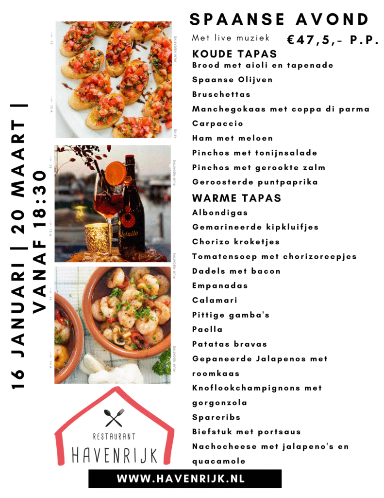 Op vrijdag 20 maart organiseren wij weer een sfeervolle Spaanse avond vol heerlijke tapas gerechtjes en gezelligheid. Geniet van een avond in Spaanse stijl, verfrissende sangria en levendige live muziek. Laat u meeslepen door de authentieke smaken en de warme ambiance van Spanje. Kom proeven, dansen en genieten!